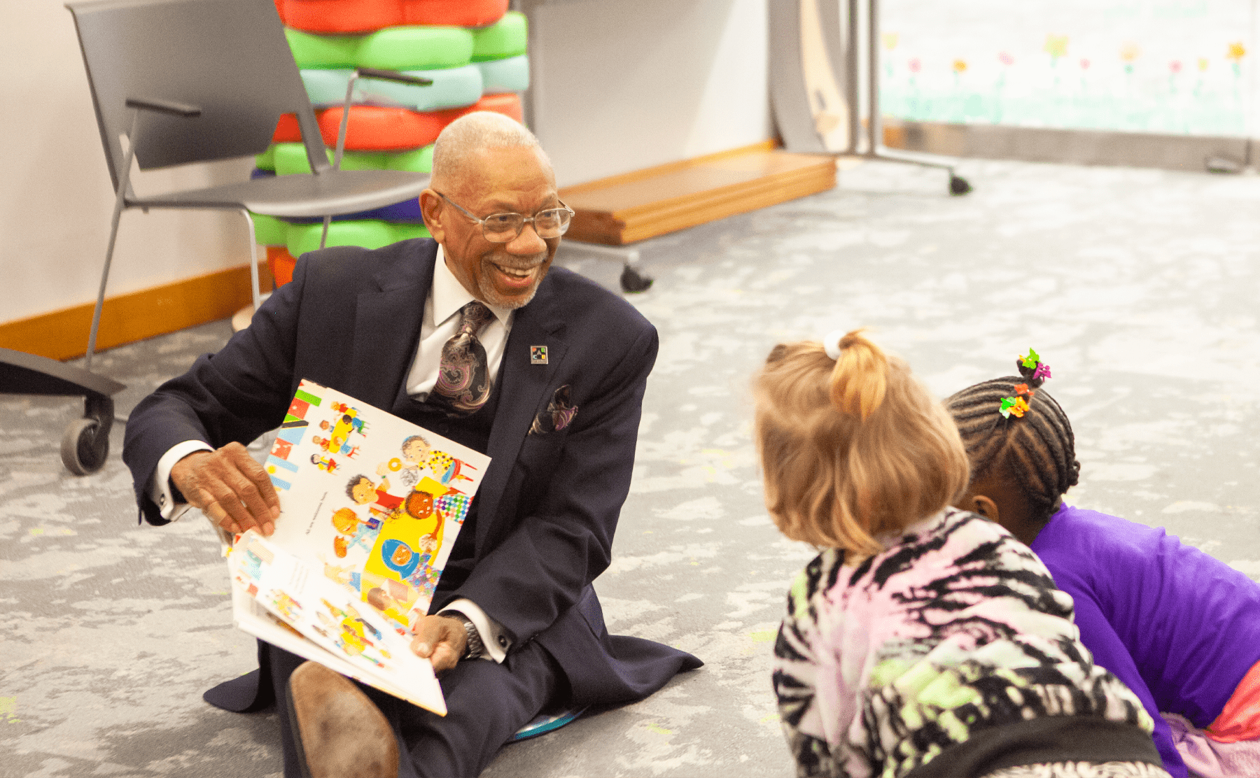 Former Dayton Mayor Jeffery J. Mims reads to children at a Hometown Heroes storytime event. (All photos courtesy of Dayton Metro Library)