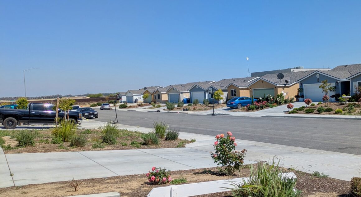 The streets of Lost Hills could be a scene from America’s rural housing crisis; there is a collection of every kind of housing, but not enough of it. The worn-out trailer park. The gentrified doublewides downtown, nestled into yards with planted greenery and picket fences. Stand-alone bungalows. And new developments of well-showcased affordable housing, on smoothly-paved streets with sidewalks.